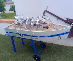 Un detalle muy chulo fue que por primera vez vi en mi Hacienda algo fuera de lo normal: una genuina moraga (espeto de sardina para los que no seáis malagueños), con su barca, sus brasas con madera de aguacate, y sus espetos. Faltaba la playa "na ma".